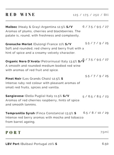 Wine Menu